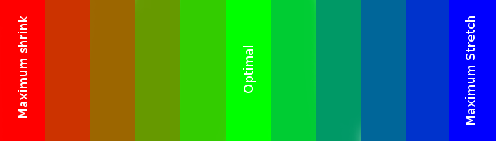 UV stretch shows the amount of distortion of the polygons of the UV map. When there is no distortion the color of the polygon is green. When a polygon is stretched the color varies from green to blue depending on the amount of stretch. When the polygon is shrunken the color varies between green and red depending on the amount of shrinking.