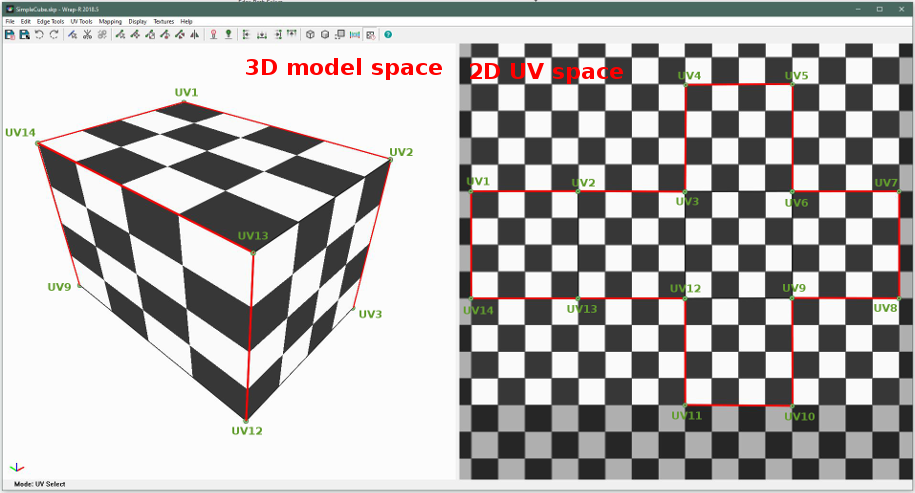 UV point is a point on the UV plane what corresponds a point on the 3D surface of the model. For UV mapping purposes we use the UV points located at the end points of edges.